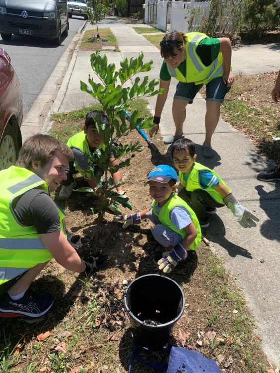 In total, 166 trees were planted on the day by 104 residents including children who signed on to help with the planting in the area. Several residents staying around for the entertainment put on by Green Heart who works to promote shading of urban areas with Brisbane City Council.