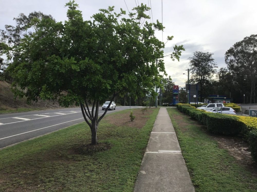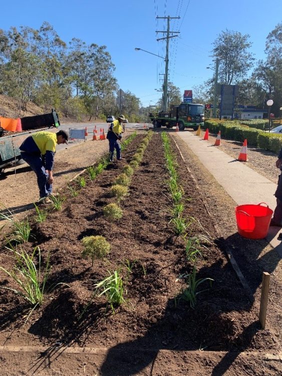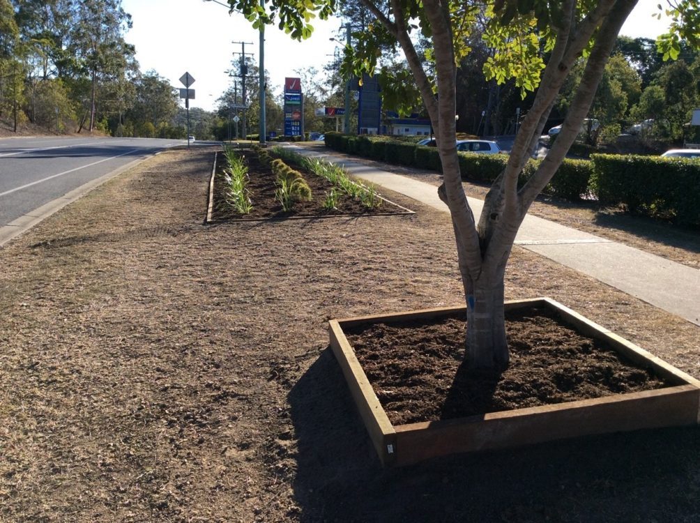 The Treescape planting team for Wacol undertook a transformation of a baron six meter verge that had four poor performing Cupaniopsis anacardioides (Tuckeroo tree).